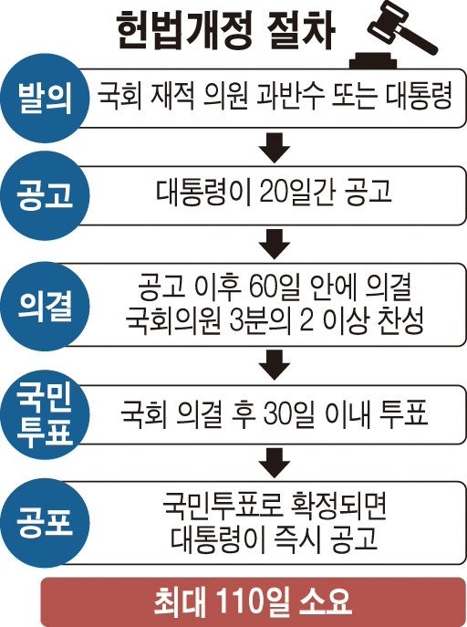- 개헌안 발의: 국회의원 과반수 또는 대통령 발의