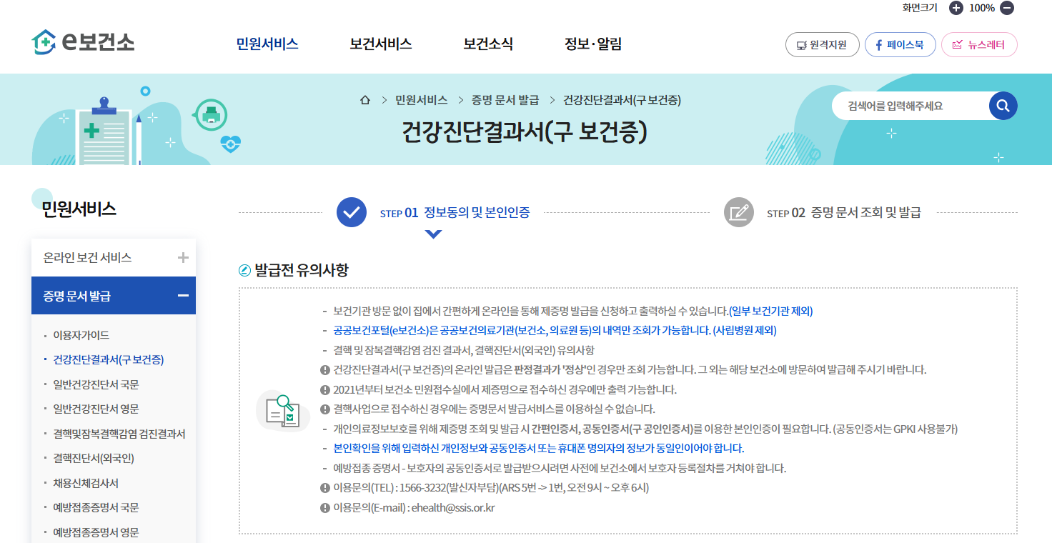 ▲ 보건증 인터넷 발급 (출처:공공보건포털 캡쳐)