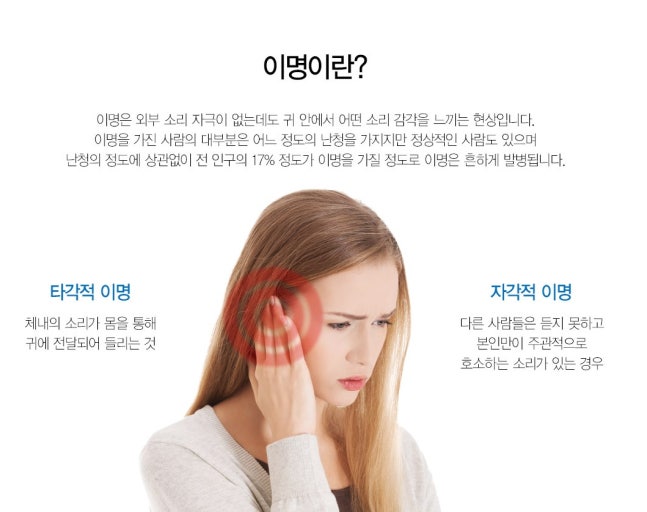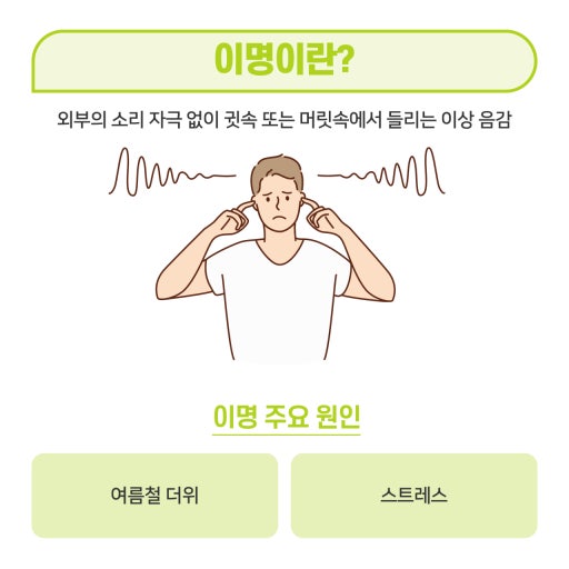 이명은 귀에서 발생하는 소음으로, 외부에서 들리는 소리가 아닌 내적인 소리입니다. 이명은 삐 소리, 매미 소리, 귀뚜라미 소리 등 다양한 형태로 나타날 수 있습니다. 때때로 귀에서 소리가 나면 심각한 문제일까 걱정할 수 있지만, 대부분의 경우 이명은 일시적인 증상입니다. 그러나 이명이 지속될 경우, 치료가 필요할 수 있습니다.