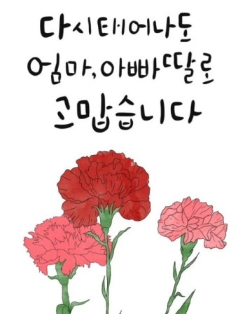 그래서 지금의 어버이날은 매년 5월 8일, 부모님께 감사의 마음을 표현하는 날로 자리잡았답니다.