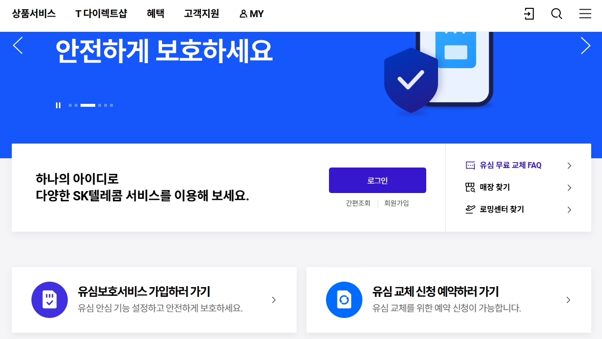 ▲ 유심보호 서비스 (출처:티월드 캡쳐)