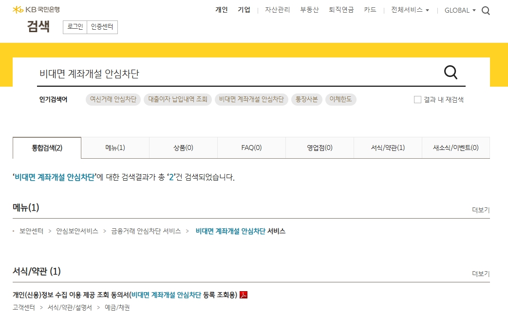 ▲ 비대면 계좌개설 안심 차단서비스 (출처:국민은행 캡쳐)