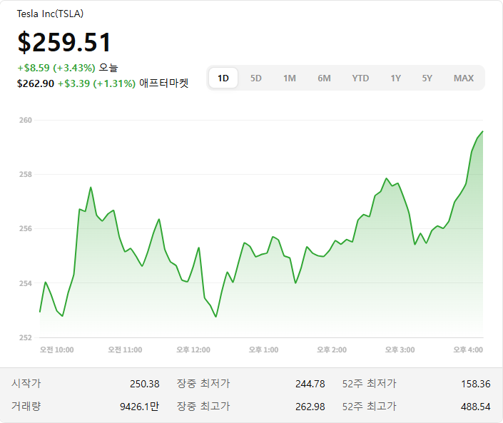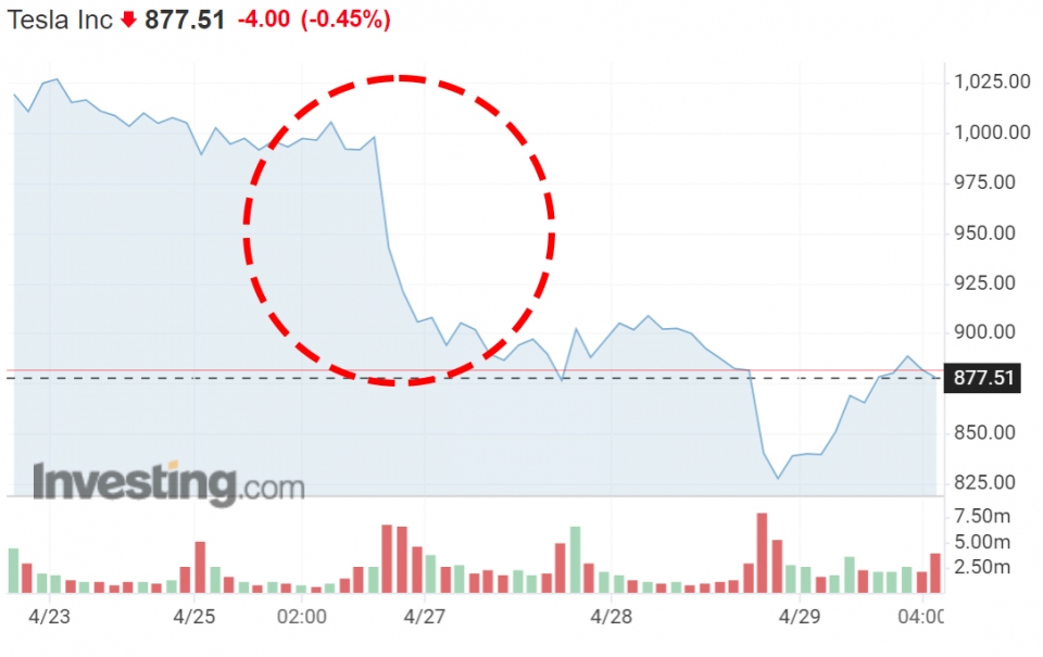 ▲ 테슬라 주가 (출처: 네이버 이미지)