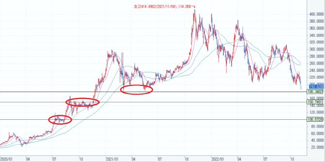 - $170대 지지선 부근에서의 기술적 반등 여부 주시