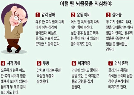 뇌졸중은 갑자기 뇌로 가는 혈류가 차단되거나 혈관이 터지면서 생기는 질환입니다. 크게 뇌경색(혈관 막힘)과 뇌출혈(혈관 파열)로 나뉘며, 그 전조증상은 아래와 같습니다.