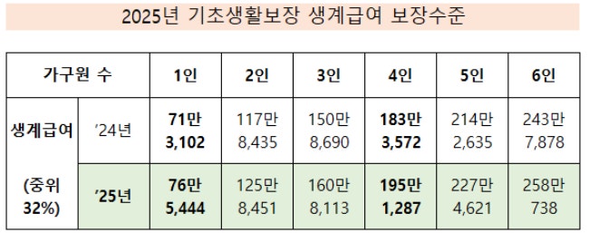 2025 생계급여 신청 방법 및 지원 금액 (변경 사항 포함)