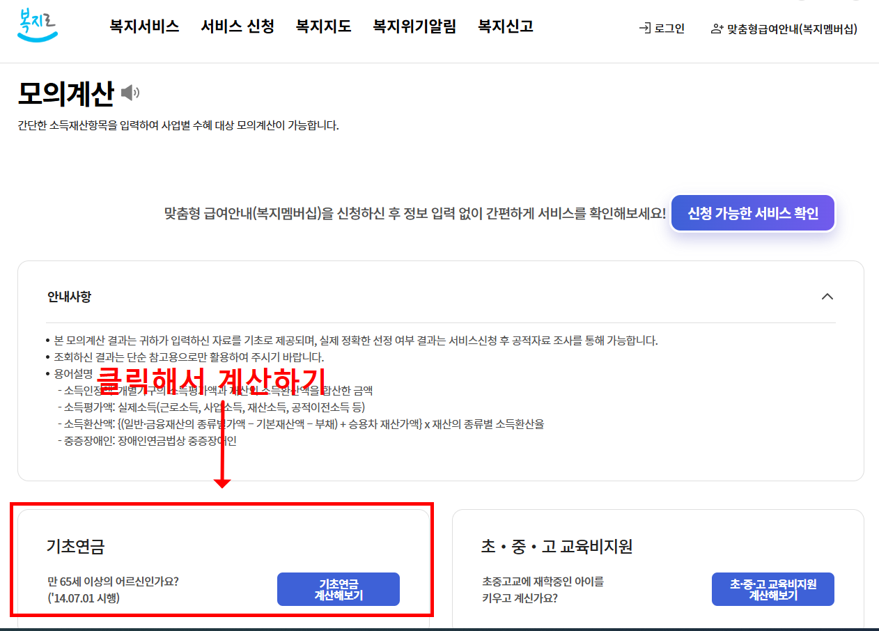 내가 실제로 기초연금을 받을 수 있는지 궁금하다면? 모의계산 서비스를 이용해보세요.